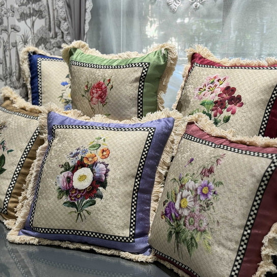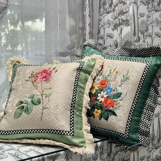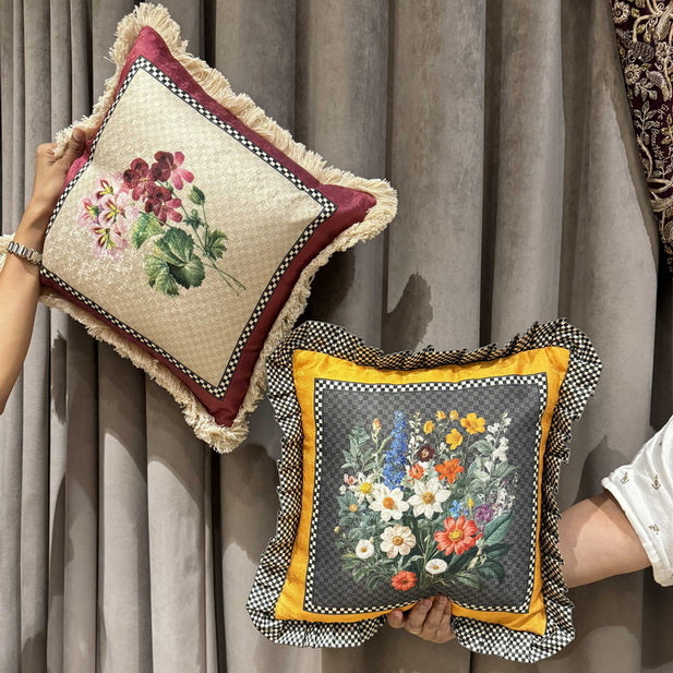 Bring in a touch of whimsy with the Botanical Fringe Cushion Covers. Featuring vibrant floral prints and a soft fringe border, these covers are a textural delight that complement both modern and eclectic décor styles.