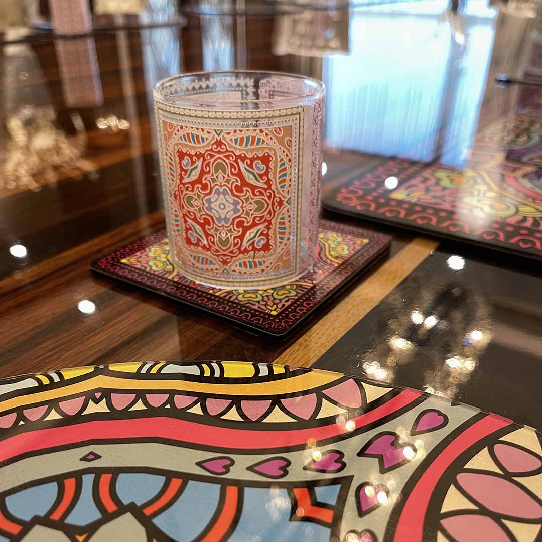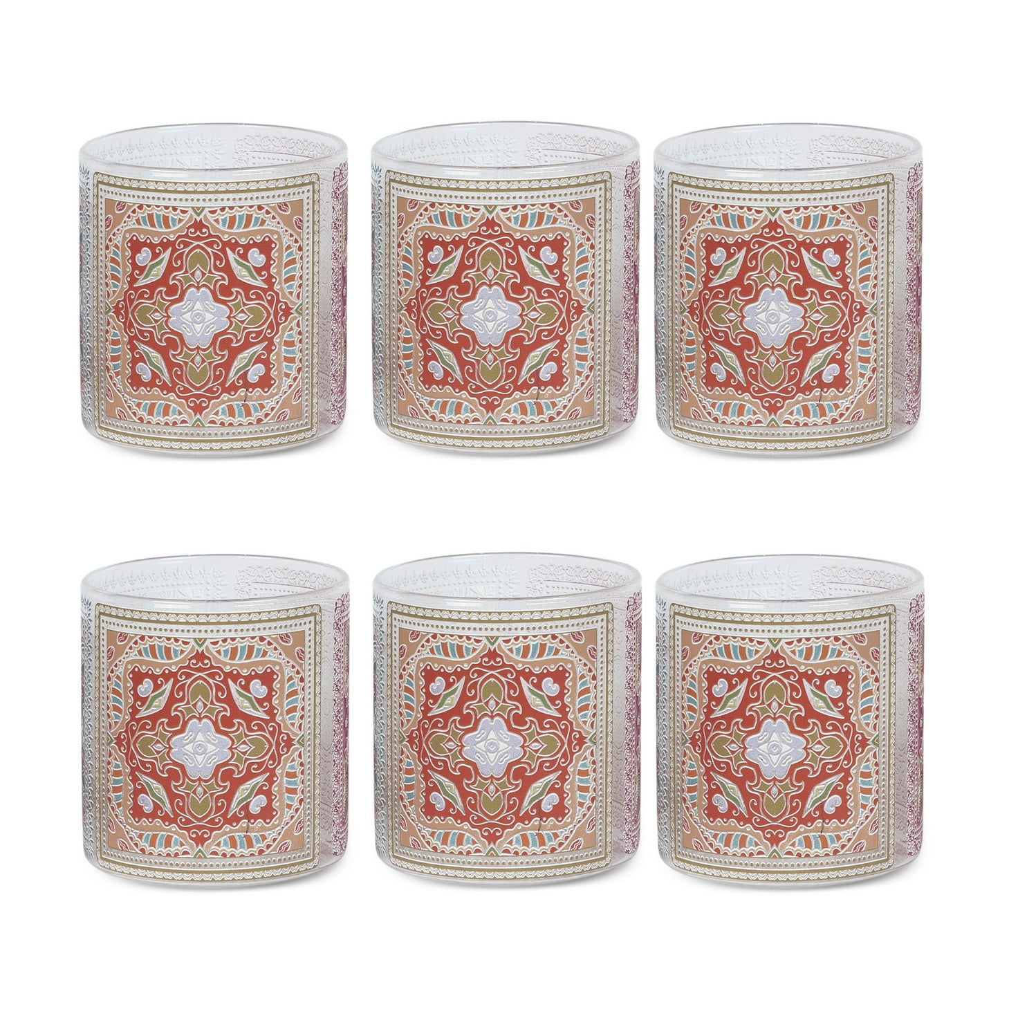 Glasses - Mandala Orange Sqaut (Set of 6)