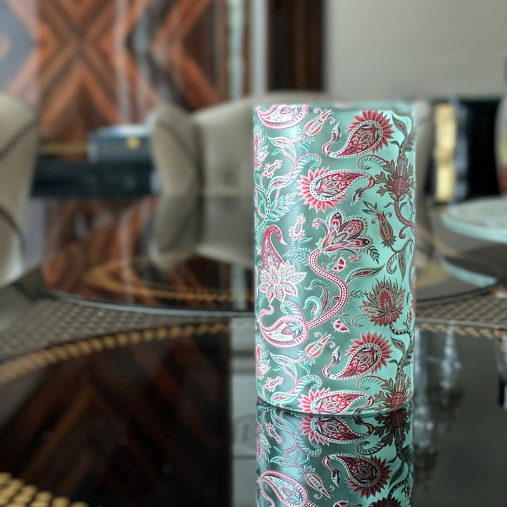 A serene expression of heritage, the Jade Bloom glass set is designed in a refreshing mint green with flowing paisley accents. This tranquil hue brings a calming elegance to every sip — perfect for intimate brunches or afternoon tea settings.