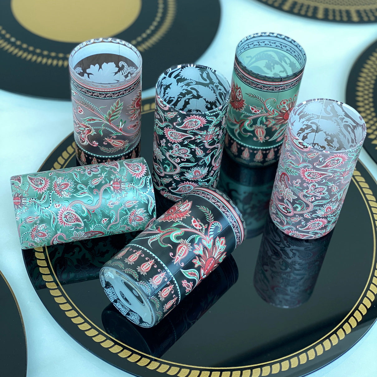Styled with grace, the Paisley Sheila glass set is adorned with ornate paisley flourishes that make each sip a delight. The Paisley Sheila is for the host who loves the details.