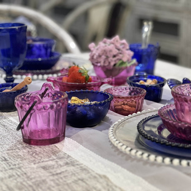 The Mini Table Essentials - Dotted Bucket Pink (Set of 4) bring playful charm to your serveware collection. Designed for larger portions, these are perfect for sharing snacks or side dishes.