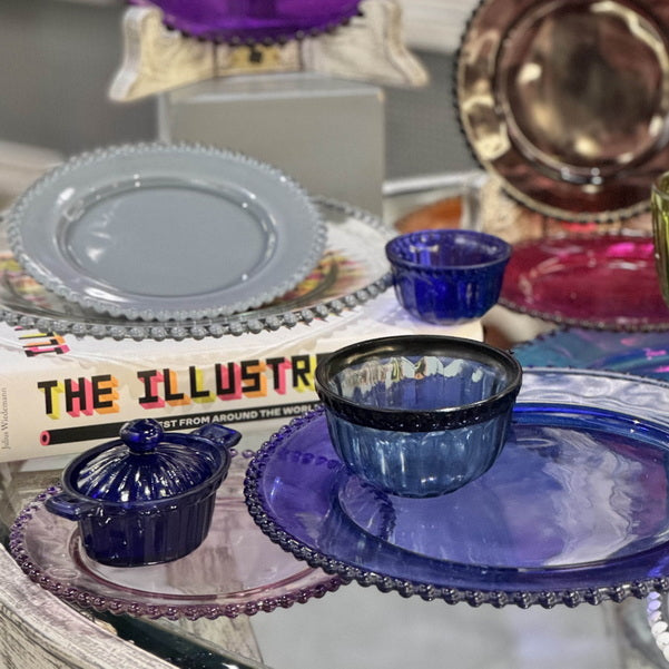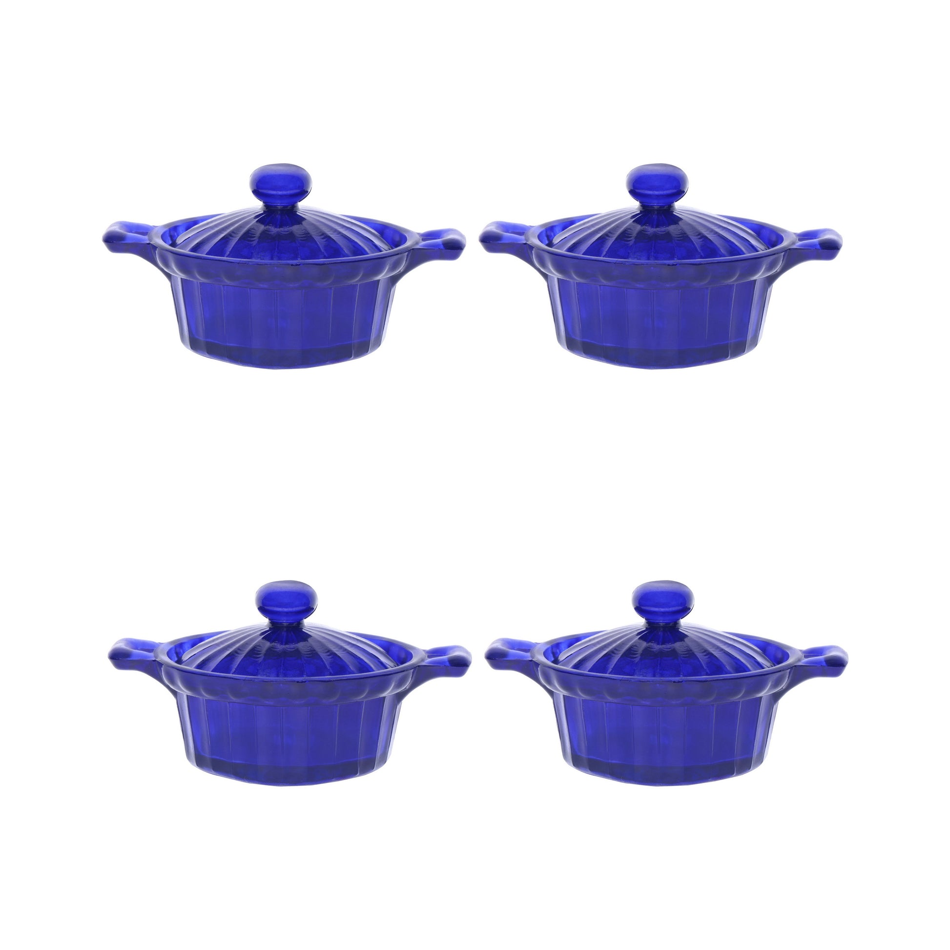 The Mini Table Essentials - Dotted Caseroll Royal Blue (Set of 4) are a vibrant and versatile addition to your tableware. The rich hue and deep structure make them ideal for both everyday and festive use.