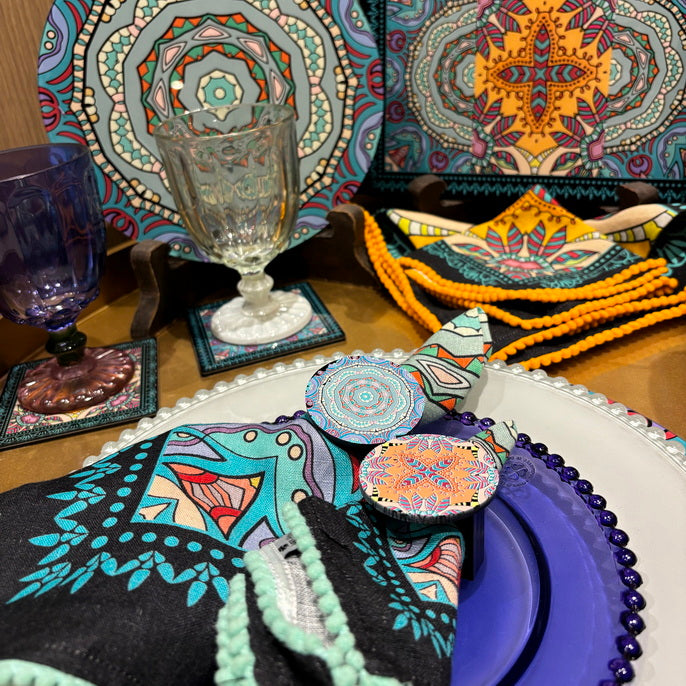 Napkin Sets - Mandala Kirost Black Rings (Set of 4)