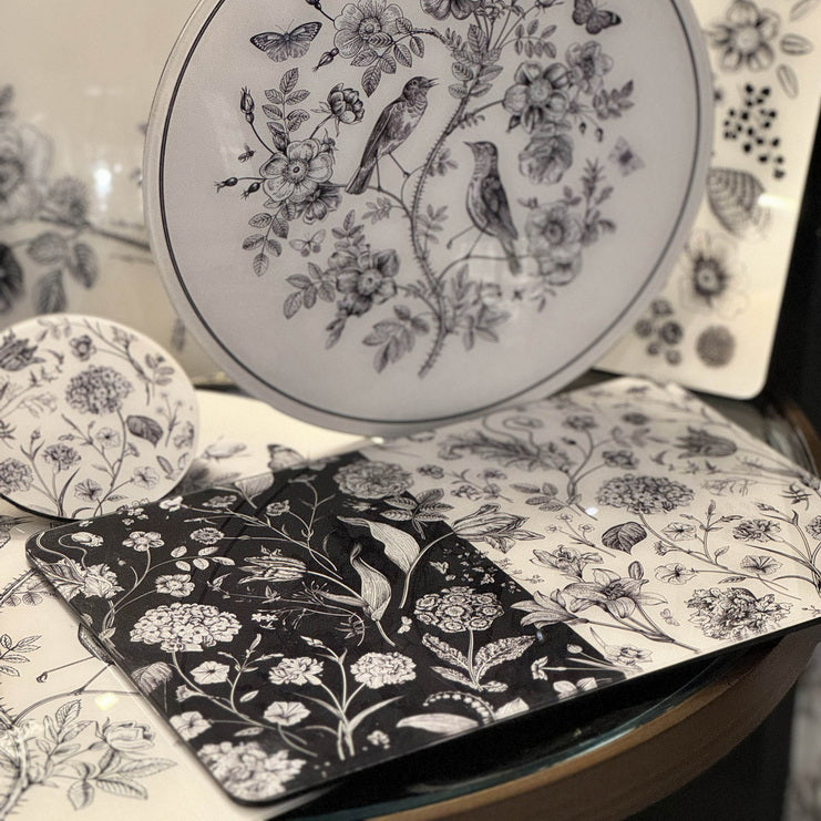 Placemat - Flora & Fauna Rectangle Black & White (Set of 4)