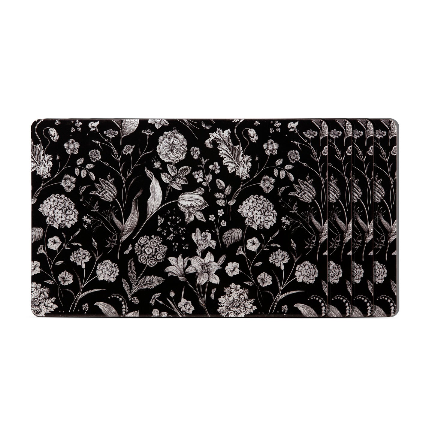 Placemat - Flora & Fauna Rectangle Flower Forest Black (Set of 4)