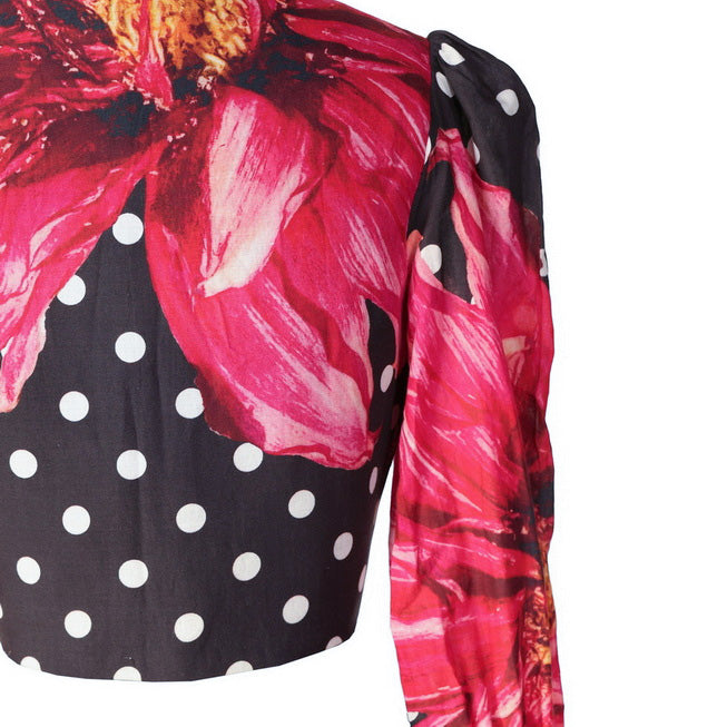 Polka Dot - Floral Sleeve Blouse