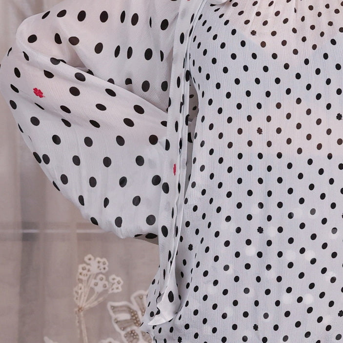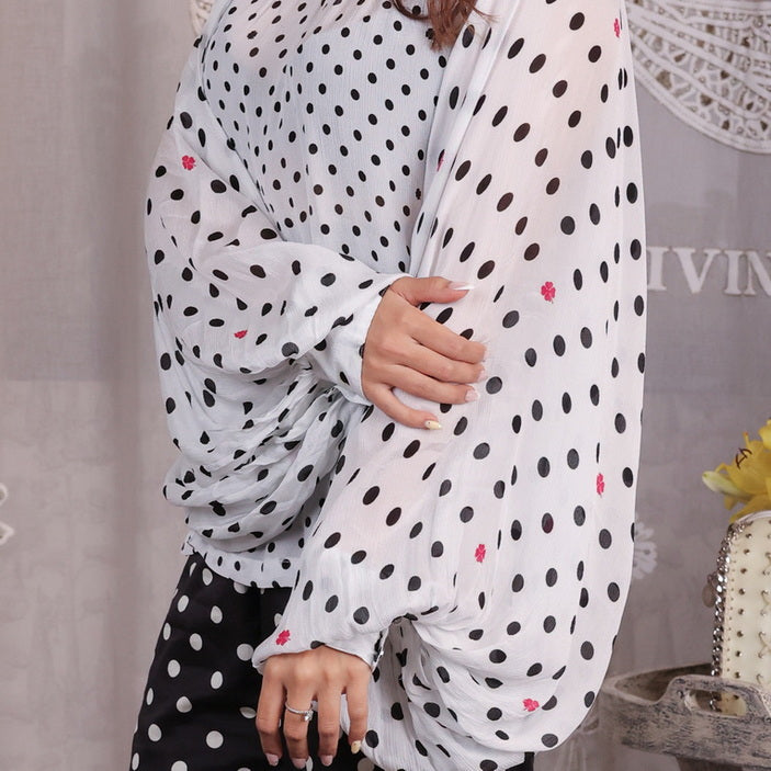 Polka dot - Raglan Gathered Sleeves White Top