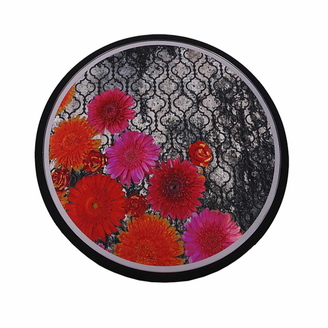 The Colby Round Side Table features exotic florals, contrasted against a black frame. Perfect to add a bit of wanderlust to your interiors.