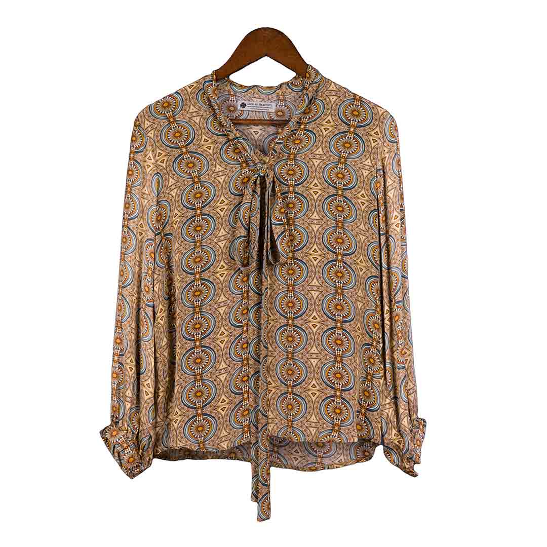 Adventure meets elegance with the Explorer – Bow Top 2, featuring a soft tie-neck detail and tailored fit. Whether styled casually or dressed up, the Explorer – Bow Top 2 reflects the spirit of wanderlust with refined charm.
