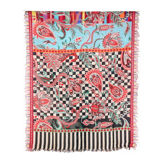 Twill Pashmina Embroidered Shawl - Blue Paisely